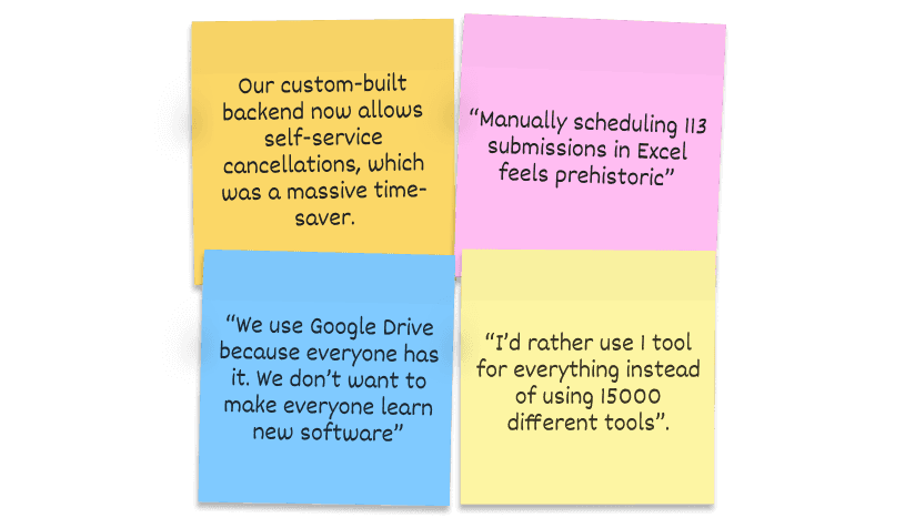 I conducted 5 in-depth interviews (45-60 minutes each) with non-profit event organisers across different experience levels and event types.